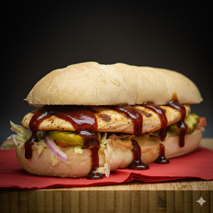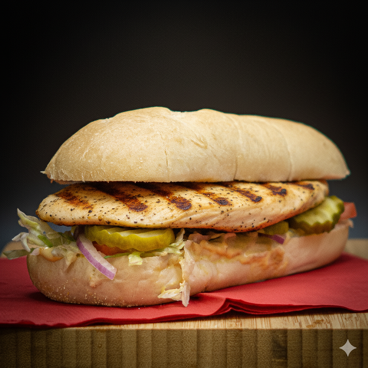 A tender 6 oz. grilled chicken breast served on a toasted hoagie roll with your choice of fresh toppings.