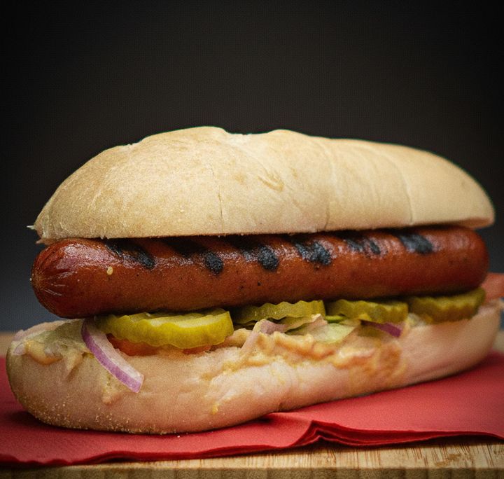 A quarter-pound, all-beef hot dog, butterflied and grilled to perfection, served in a warm bun.
