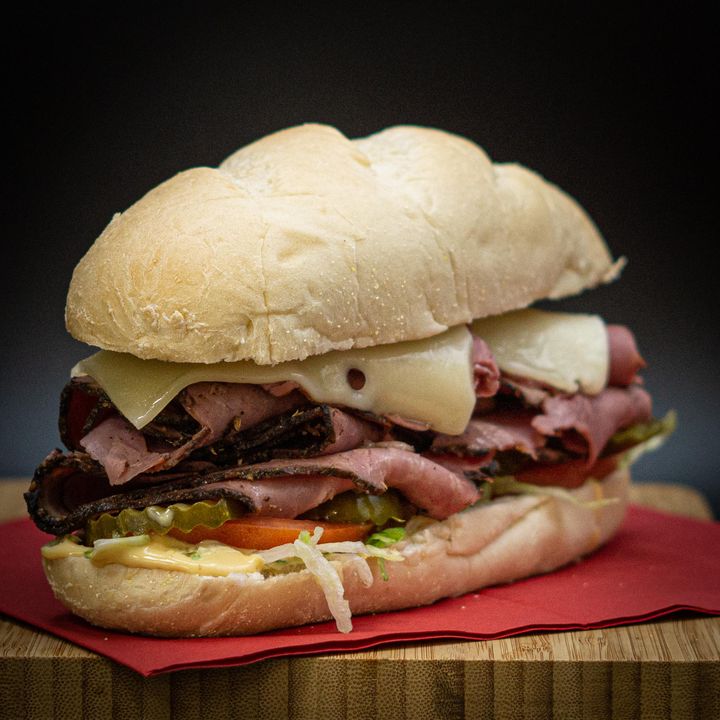 Sizzling hot pastrami, straight from the grill and smothered in gooey Swiss cheese. Served on a fresh hoagie roll—just tell us how you want it topped.
