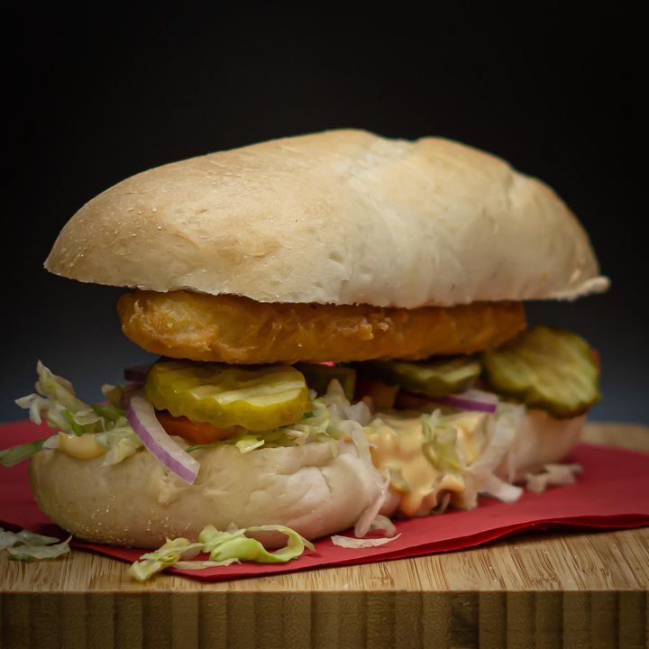 A flaky, 4 oz. beer-battered cod filet, fried golden-brown and served on a warm bun with tartar sauce.